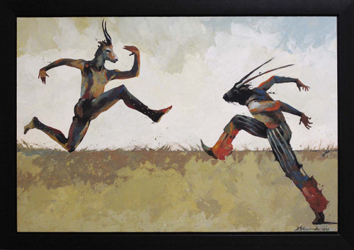 19" x 13" Gessoed Board, original acrylic painting with black frame.